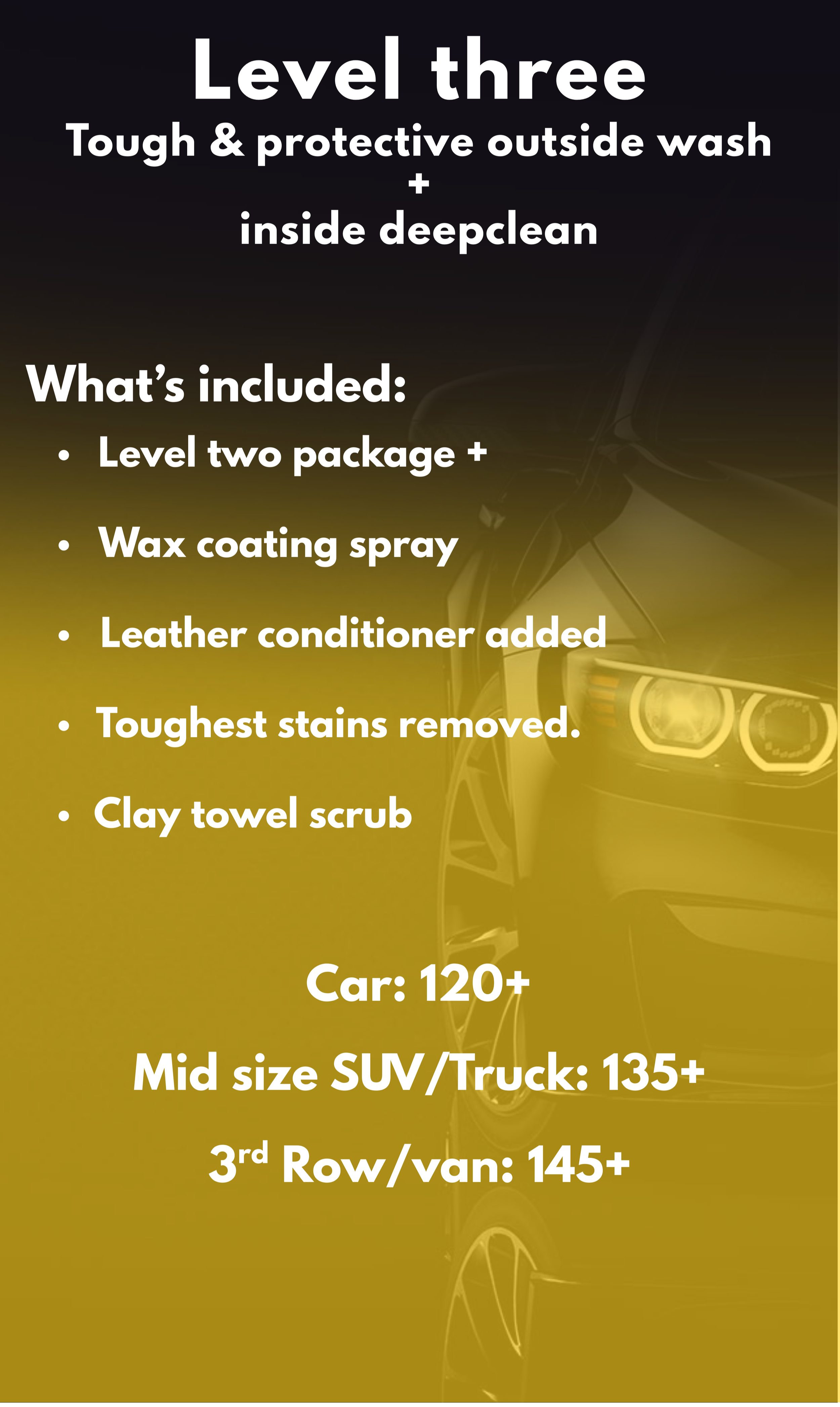 Full Coat Wax, need a waxing on your car, purchase this add on $25
